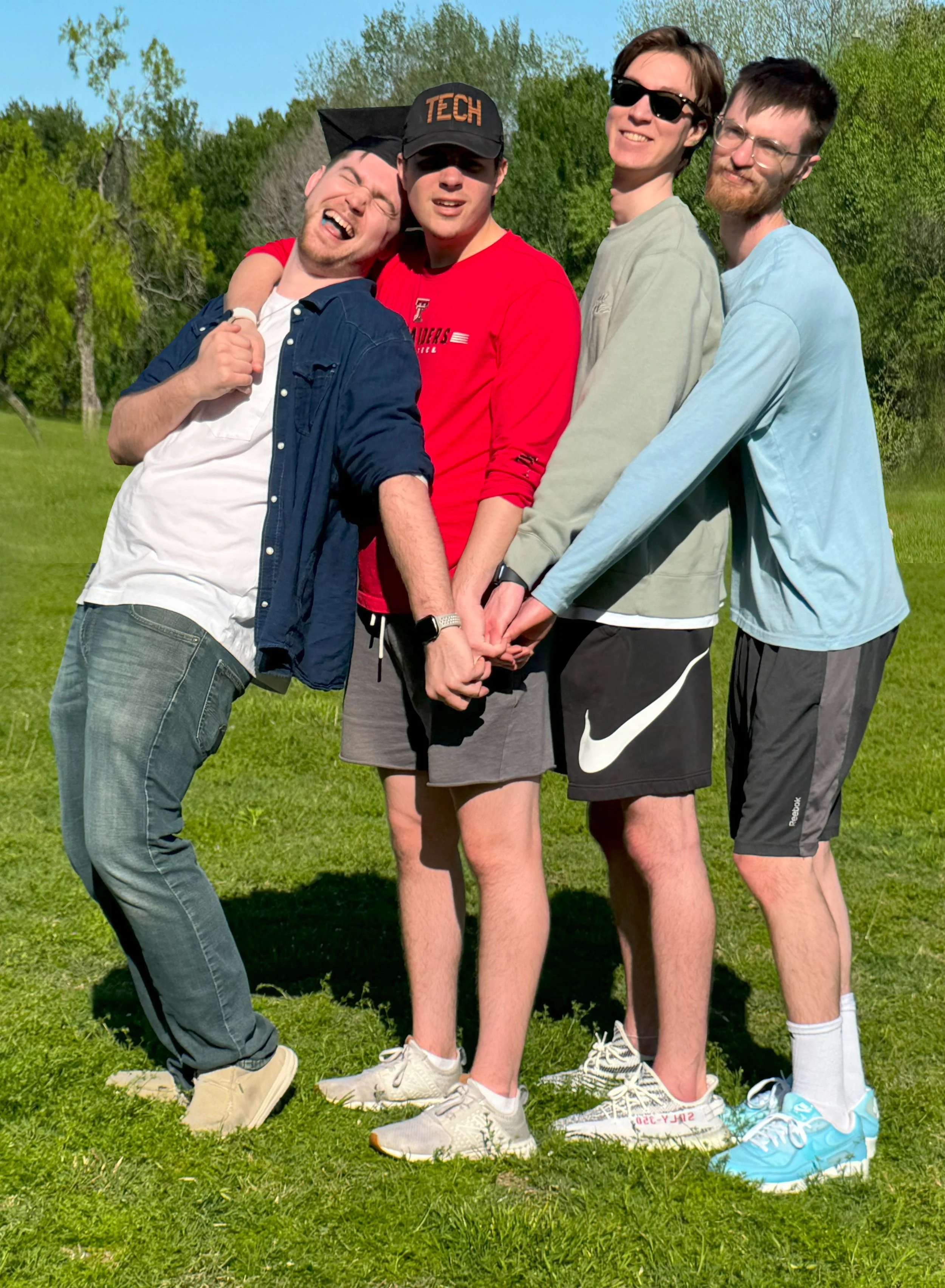 Here I am (far left) being a weirdo with my friends as part of my graduation photos.
